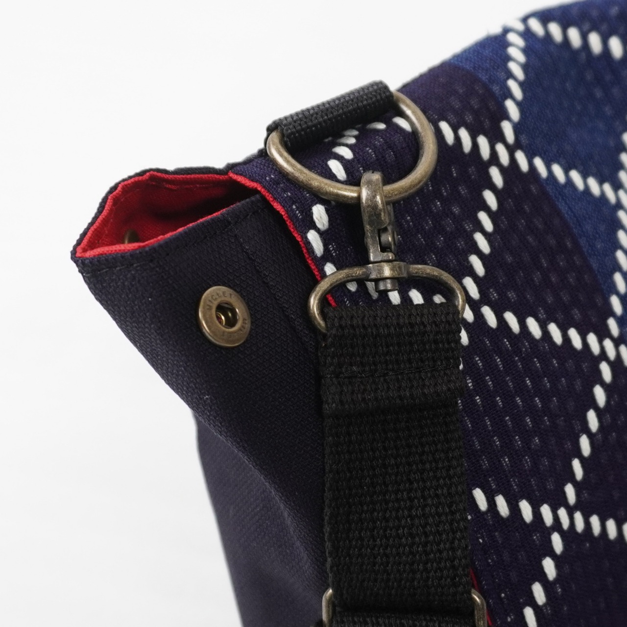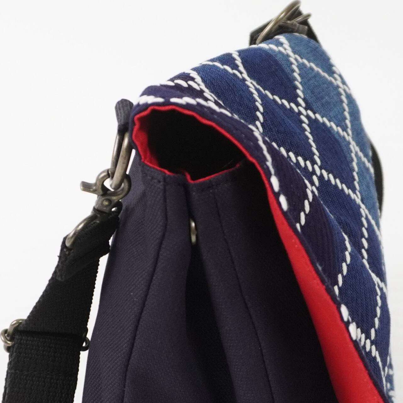CHIGIRI グラデーション刺子切替 横型かぶせショルダーバッグ 日本製 メンズ ユニセックス インディゴ鹿の子