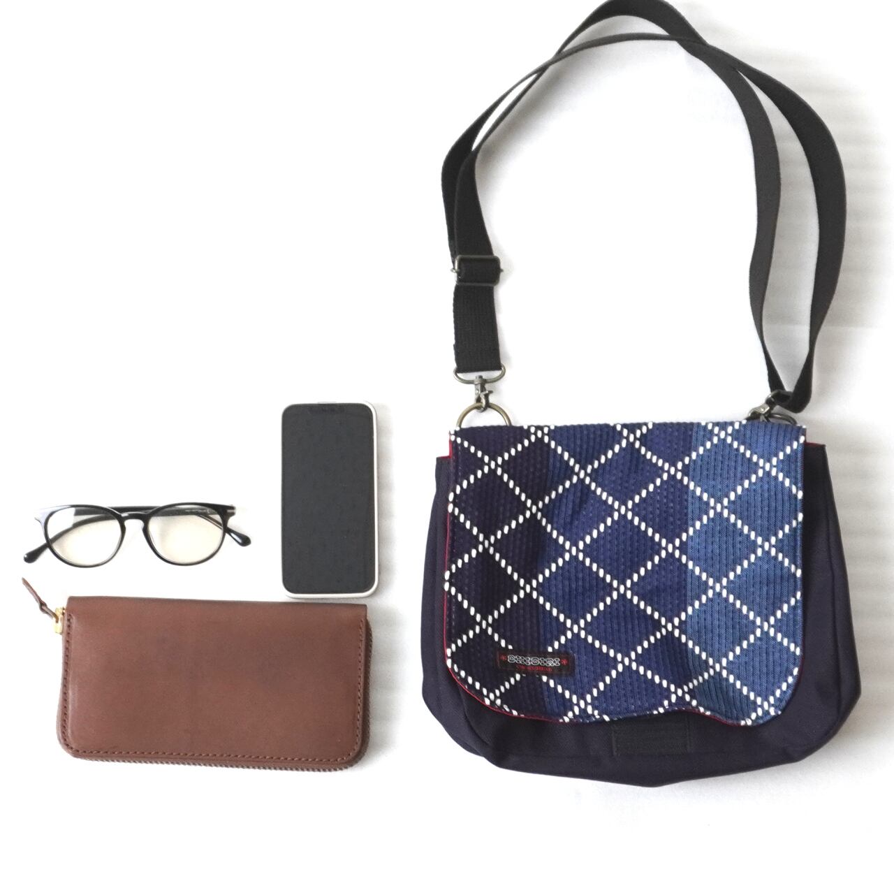 ちょっとしたお出かけにちょうどいいサイズ感の横型かぶせショルダーバッグから、注目のグラデーション刺子切替
